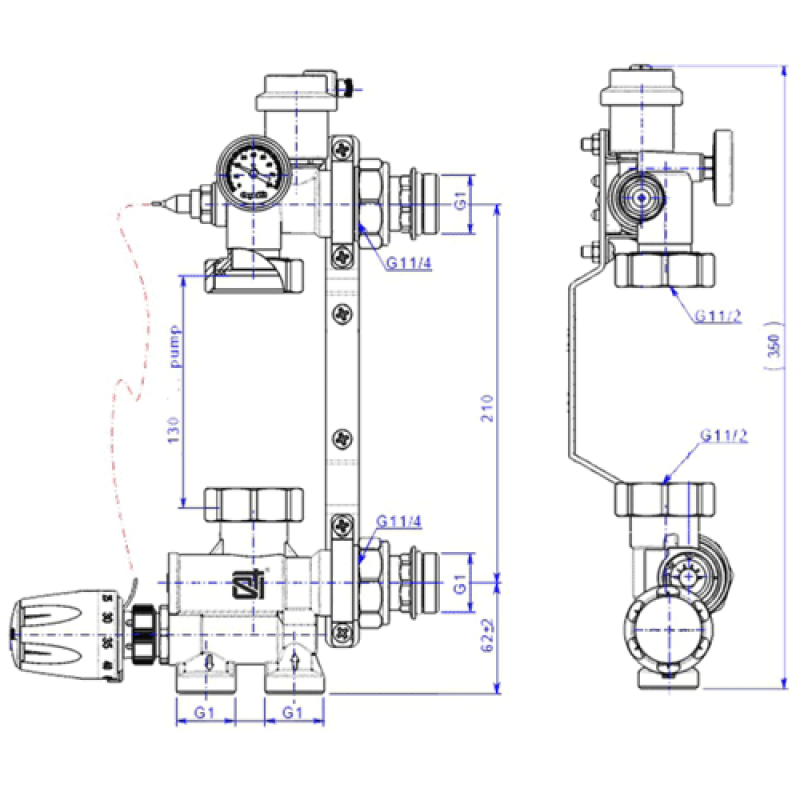 Насосно-смесительный узел для теплого пола с термоголовкой (без насоса) Е008-3
