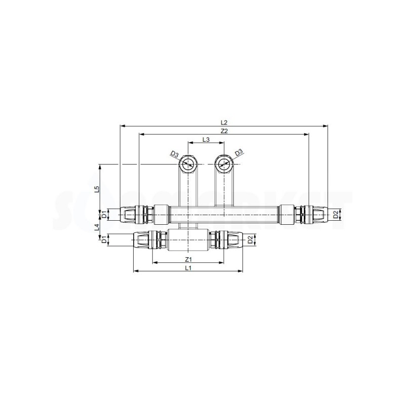 Узел присоединительный двойной Push-fit для плинтусной разводки Дн 20 х 15мм х 20 TECElogo